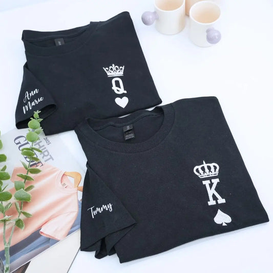 Custom Embroidered King and Queen Shirts for Couple, Personalized Gift for Him Her