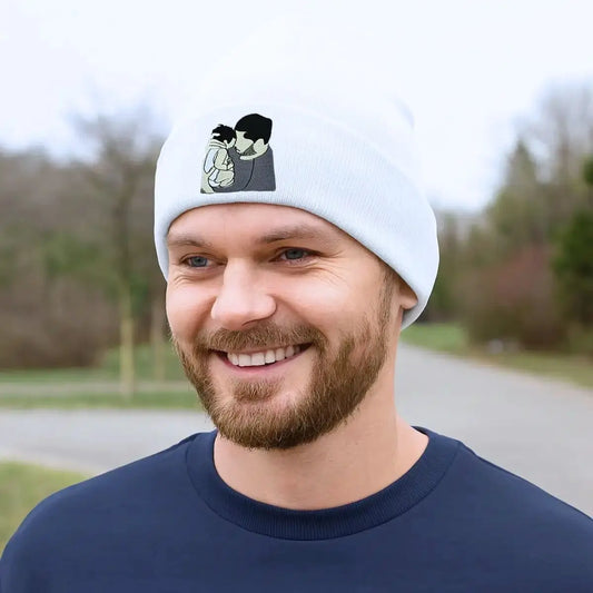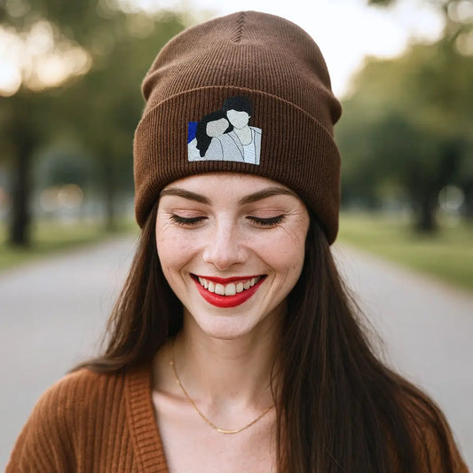 Custom Couple Beanie with Embroidered Portrait from Photo, His and Her Anniversary Gifts